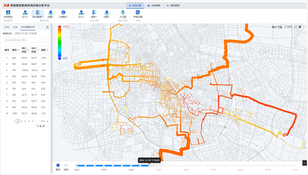 记者4月25日从天津大学获悉,由该校环境科学与工程学院王雅然副教授科研团队历时10年打造的全球首套城市超大型热力网在线动态仿真与优化控制平台(Tensok),在天津市中心城区1.1亿平方米大热网上成功试运行。该平台是全球唯一一款能够实现亿平方米级超大型热力管网在线实时动态模拟水力、温度变化全过程的快速仿真与控制软件系统,将大幅提升天津市中心城区一张网供热系统的调控精度、运行经济性、安全性和可靠性,有效降低输配损耗,助力天津城市智慧供热建设。