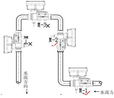 ◇图中M-1、M-2所示为正确安装方式(M-1为水平安装、M-2为垂直安装),热量表宜安装在管道的低位,热量表后端有背压,不会产生气泡影响测量精度。