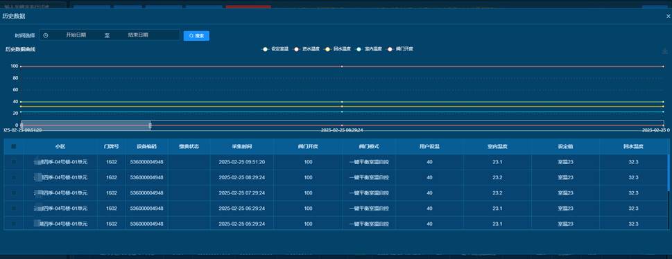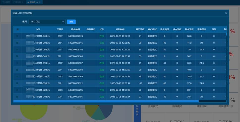 2.小区的户阀控制页面,可以进行户阀的控制和信息的查看以及各户的供热情况