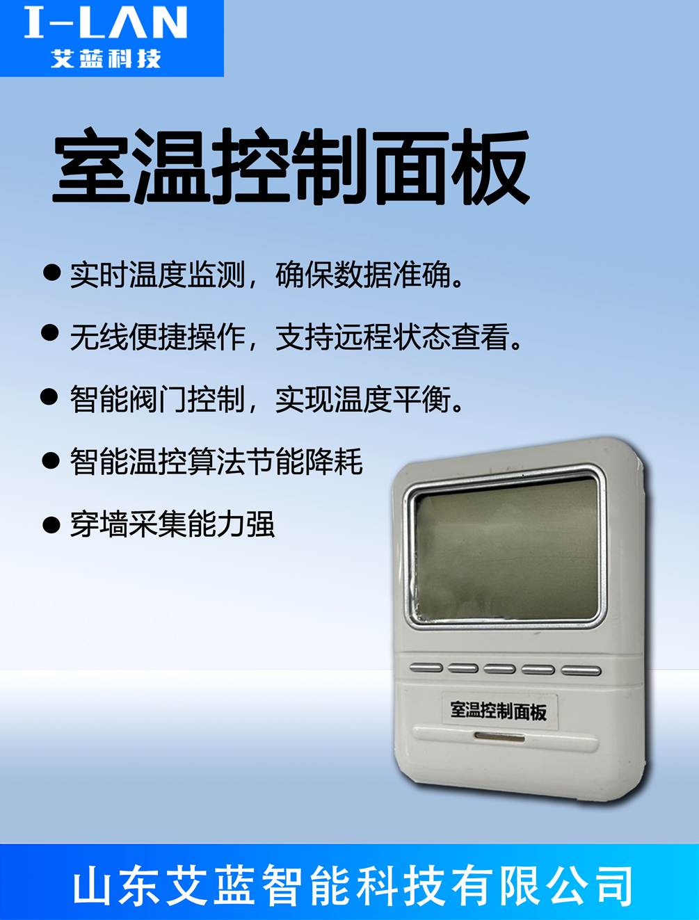将控制面板固定在室内墙壁上,高度建议 1.2~1.5 米,避免阳光直射或靠近热源。
